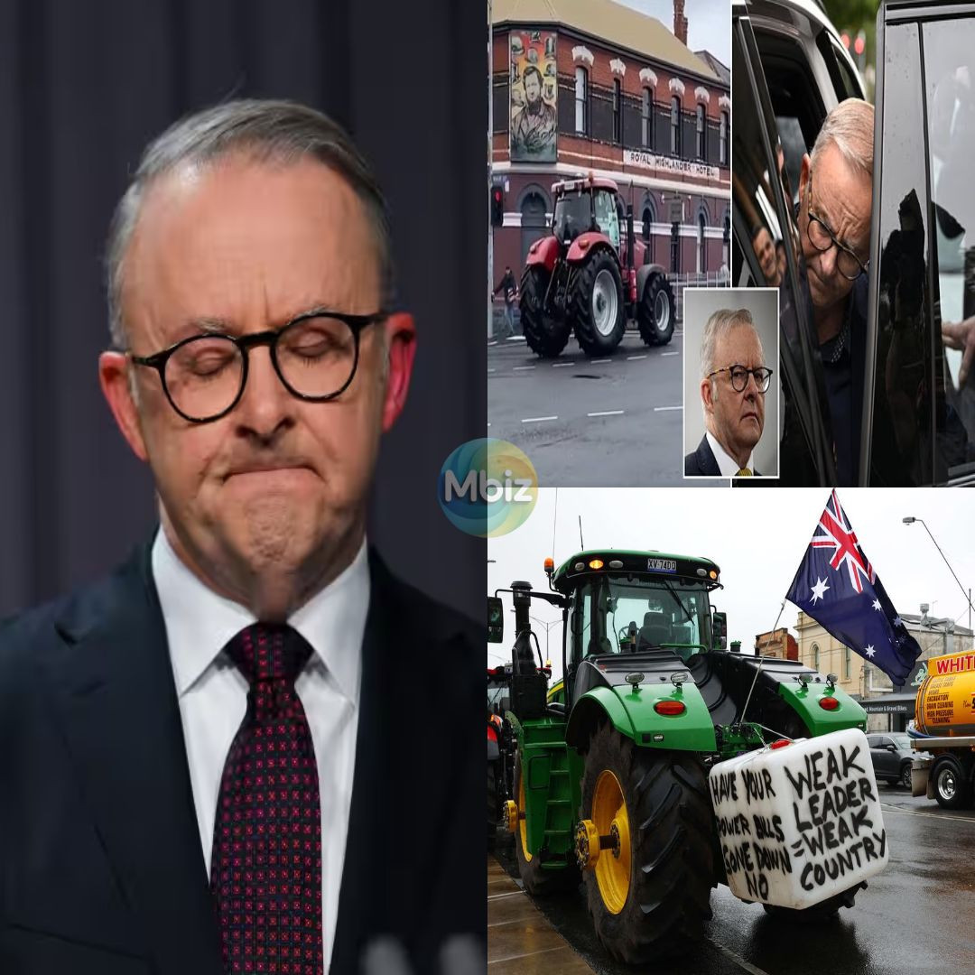 Prime Minister Anthony Albanese was driven out of Berat, Victoria moments ago as an aggressive protest by angry farmers escalated into a tractor-led motorcade chase along Midland Highway. Dozens of enraged farmers, furious over government policies, forced the prime minister’s motorcade to flee amid sirens and escalating tensions at the Bush Summit.